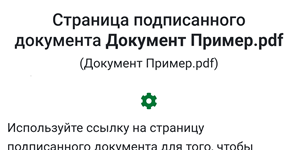 Кликните на кнопку для того, чтобы перейти на страницу подписанного документа. Подлинник документ с идентификатором будет автоматически сохранен на смартфон.